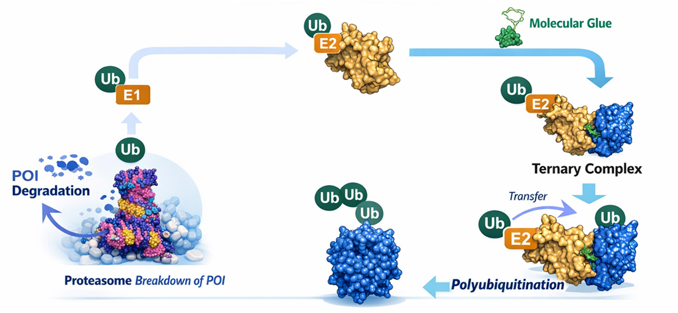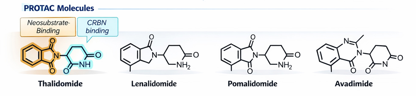 Molecular glues are characterized by enhanced oral bioavailability, membrane permeability, and blood brain barrier penetration, along with compliance to Lipinski’s Rule of Five due to their lower molecular weight. Their simpler synthesis enables clearer structure, activity relationships and improved synthetic tractability. Clinical validation of this approach is demonstrated by FDA-approved IMiDs such as lenalidomide and pomalidomide. This modality enables access to previously undruggable targets, including transcription factors, scaffolding proteins, and neo-substrates.